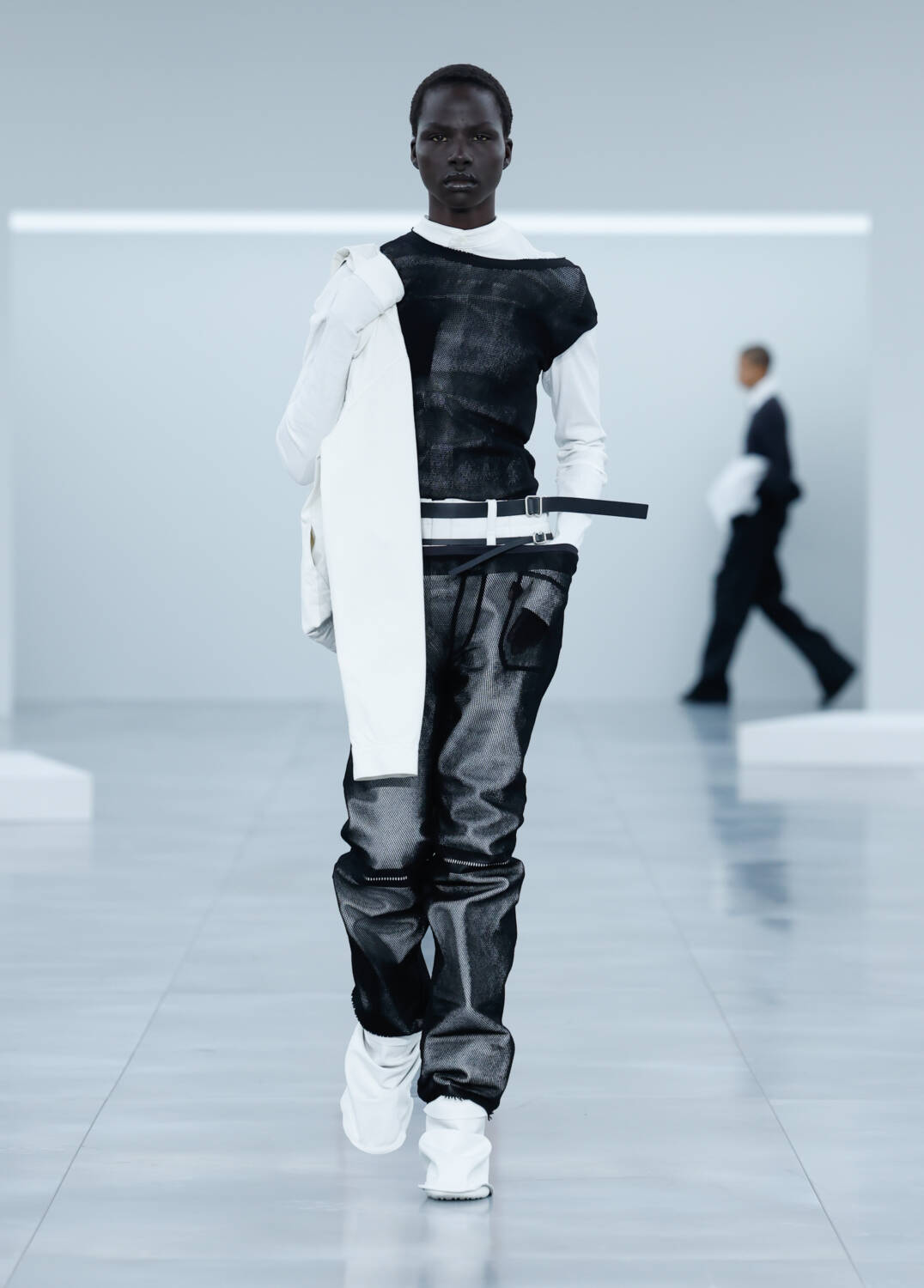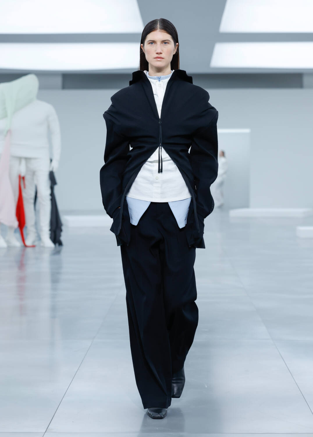 Then came a return to normality – or something like it. Tailored looks emerged, crisp white vests layered over blue poplin shirts. Monochrome moments held their ground. White never truly disappeared; was never fully consumed by colour.