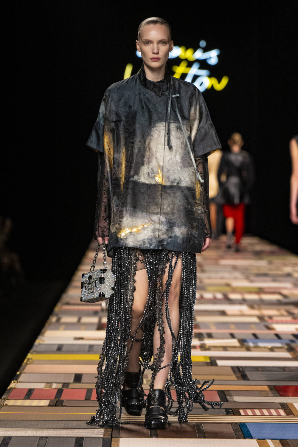 The show ended with a series of three jackets printed with paintings by the artist Laurent Grasso from his series Studies Into the Past, which insert alien elements into renaissance landscapes. LV collectors will clamour for them. Indeed, this Louis Vuitton  collection is one for the history books with Ghesquière at his groundbreaking best.