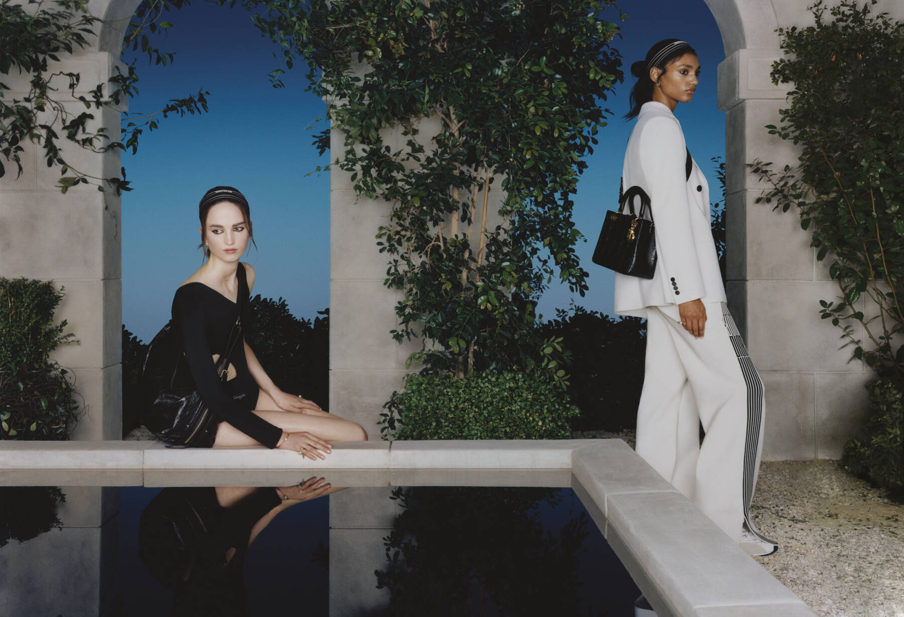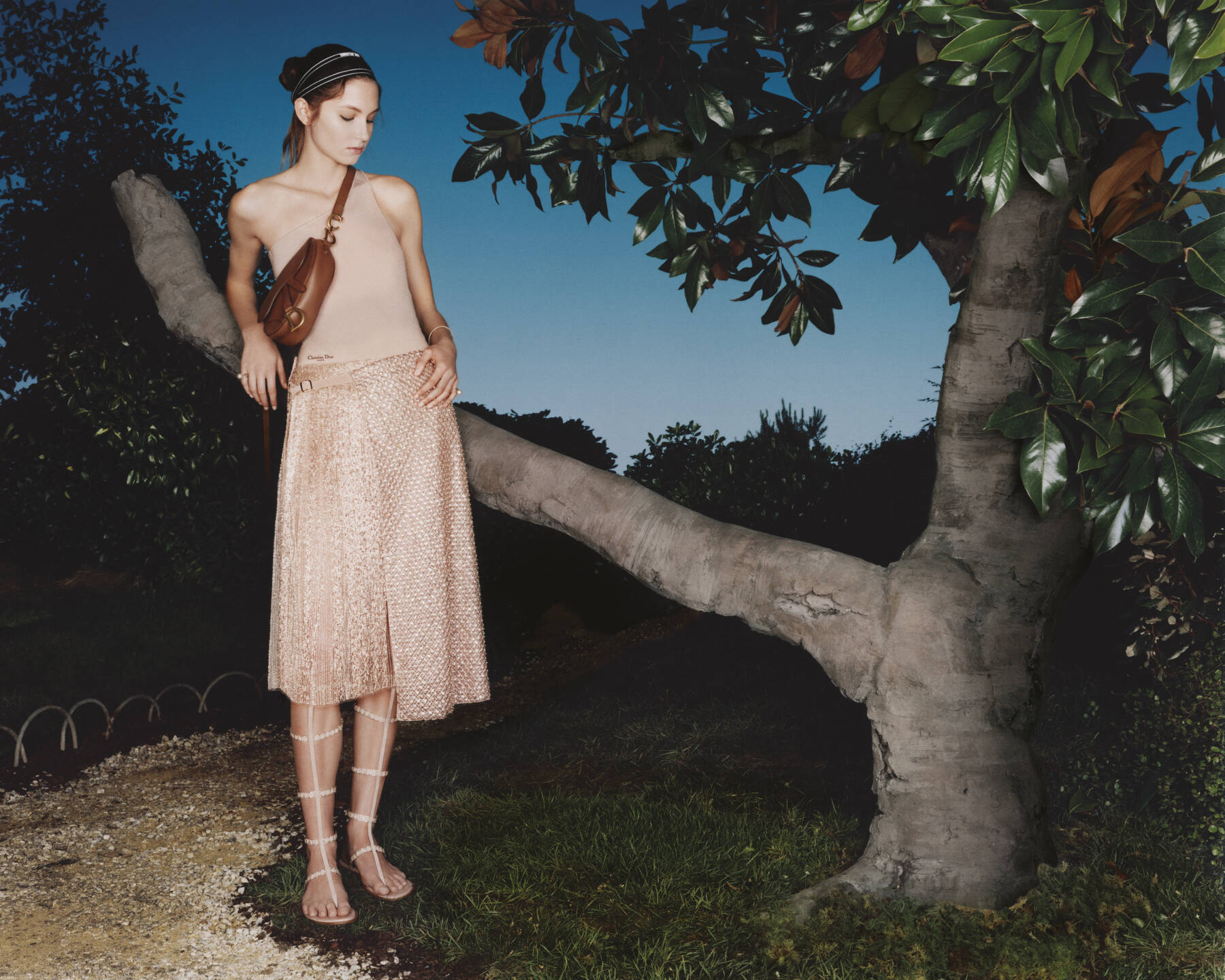 Maria Grazia Chiuri’s spring/summer 2025 campaign reimagines the powerful, graceful figure of the Amazon – a woman channelling strength and opulence. Photographed by Sarah Jones in a dreamlike countryside setting designed by Alexander Bock, the collection is enhanced by an angelic, ornamental atmosphere where nature’s untamed beauty meets Dior’s refined elegance. Flowing silhouettes draped in ethereal fabrics move with the body, while a colour palette of muted blues, indigos and misty greys mirrors the dynamic hues of the sky at dawn and dusk. TP