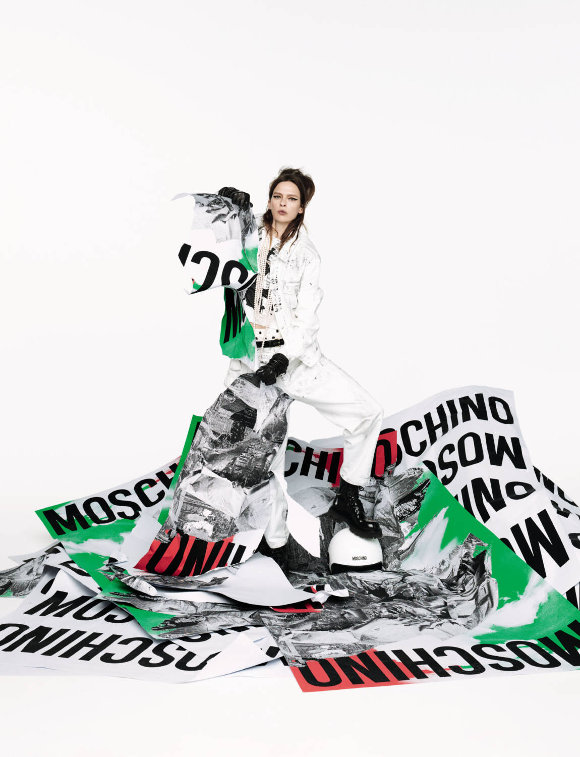 Moschino‘s SS25 campaign is an unapologetic celebration of individuality, rebellion and self-expression. Under the creative vision of Adrian Appiolaza, Moschino orchestrates a theatrically irreverent narrative. Inspired by Italian cinema’s bold storytelling, models tear through oversized posters – ripping, twisting and breaking free from convention. Nautical accents, pearl-drenched accessories and exaggerated textures collide with playful prints and sharp slogans, blending nostalgia with modernity. Set against a stark white backdrop, the surreal spectacle amplifies Moschino’s legacy of wit and dramatic allure. This campaign isn’t just about fashion – it’s an ode to uniqueness and being the star of your own daring, untamed story. AB