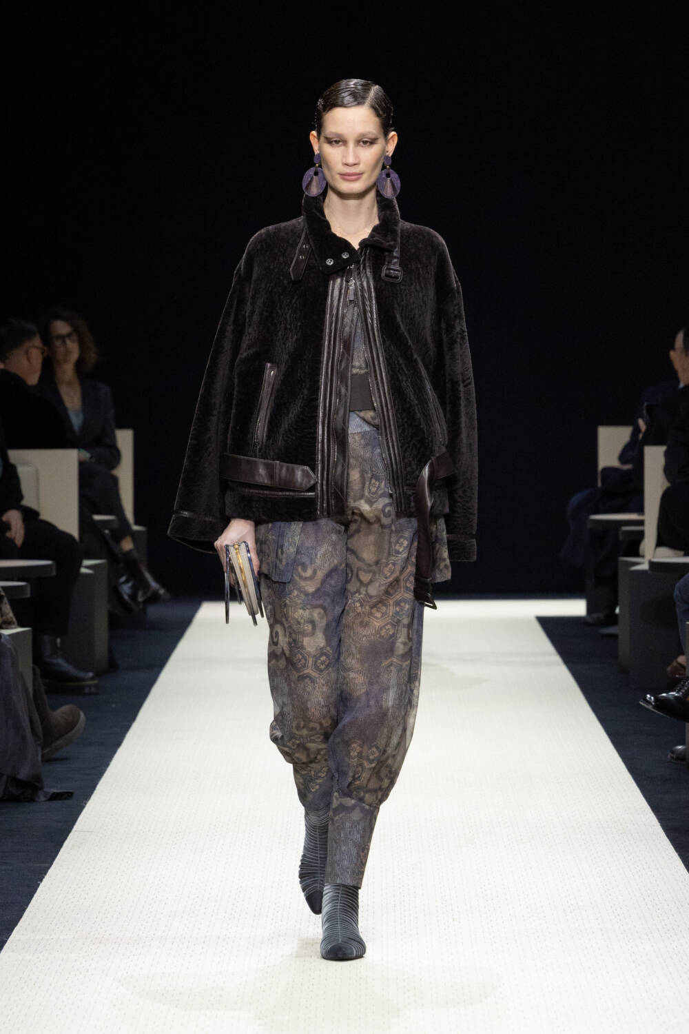 Giorgio Armani, the great fashion maestro, explored his aesthetic roots for AW25. Fifty years into his long career, every show is a masterclass in Armani style – that unique marriage of purity, precision and softness that he has perfected over five decades. The lines were pure with an elegant flow, with jackets and coats rich with embroidery and texture, but never overworked – this designer instinctively knows when enough is enough. Most were worn with trousers which nodded to the designers enduring appreciation of silhouettes from the East and Far East.