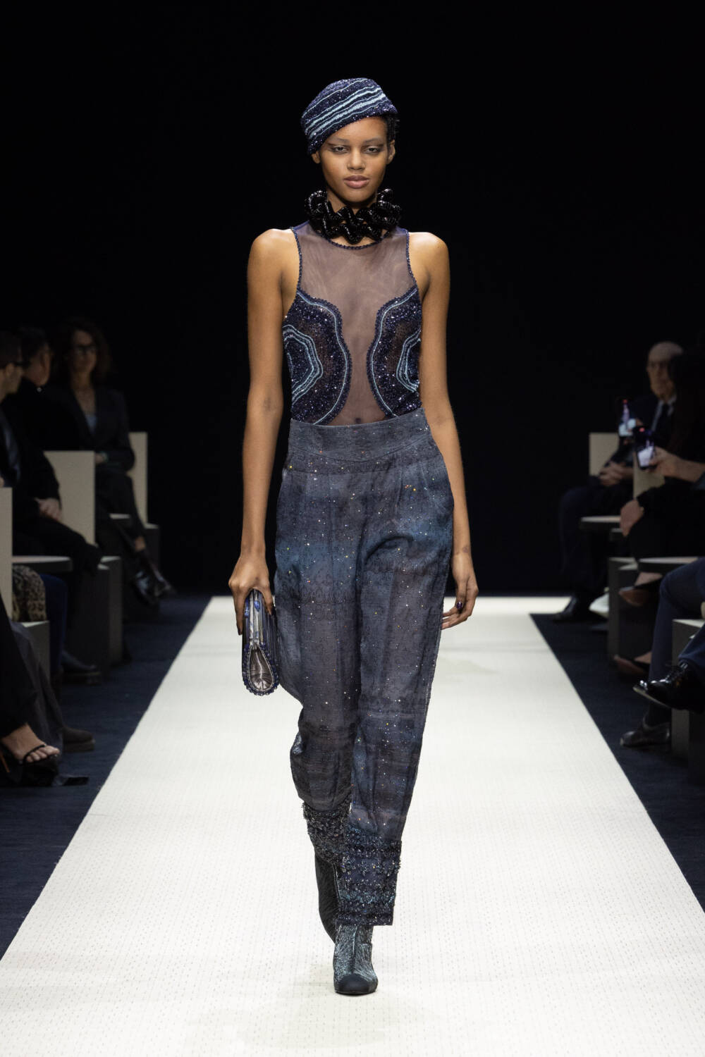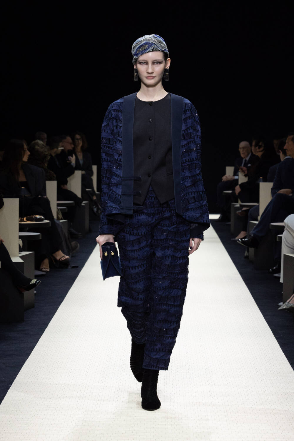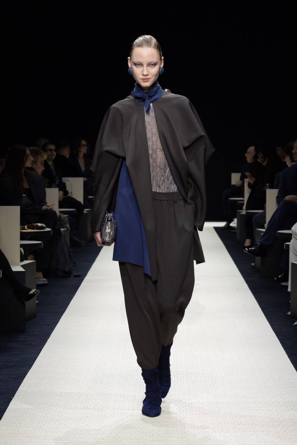 He saved the best for last, in the eveningwear section were long, weightless gowns that glistened with shimmering embroidery. You’ve heard the saying Italians do it better? Armani – always true to himself and codes honed over decades – does it best of all.