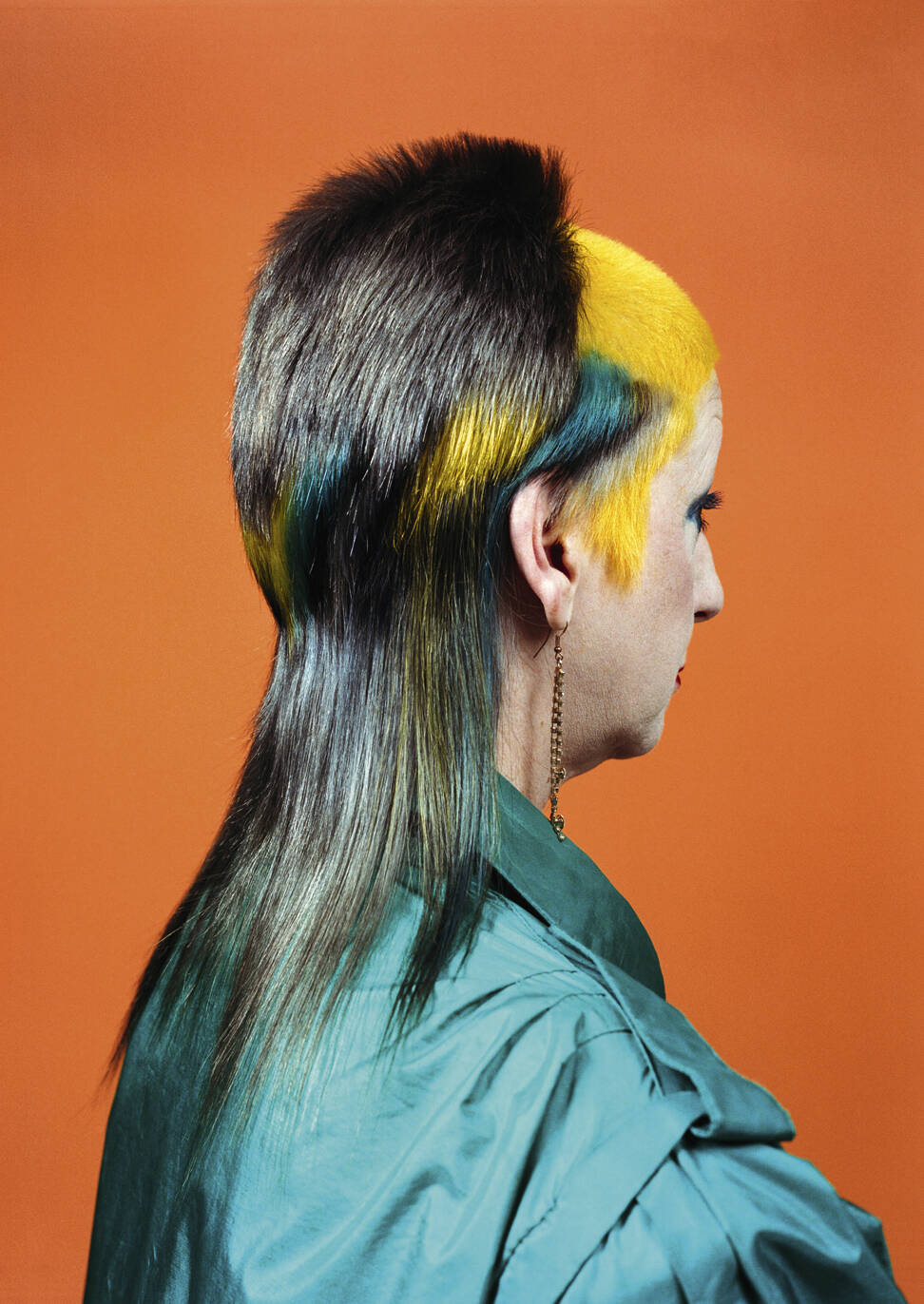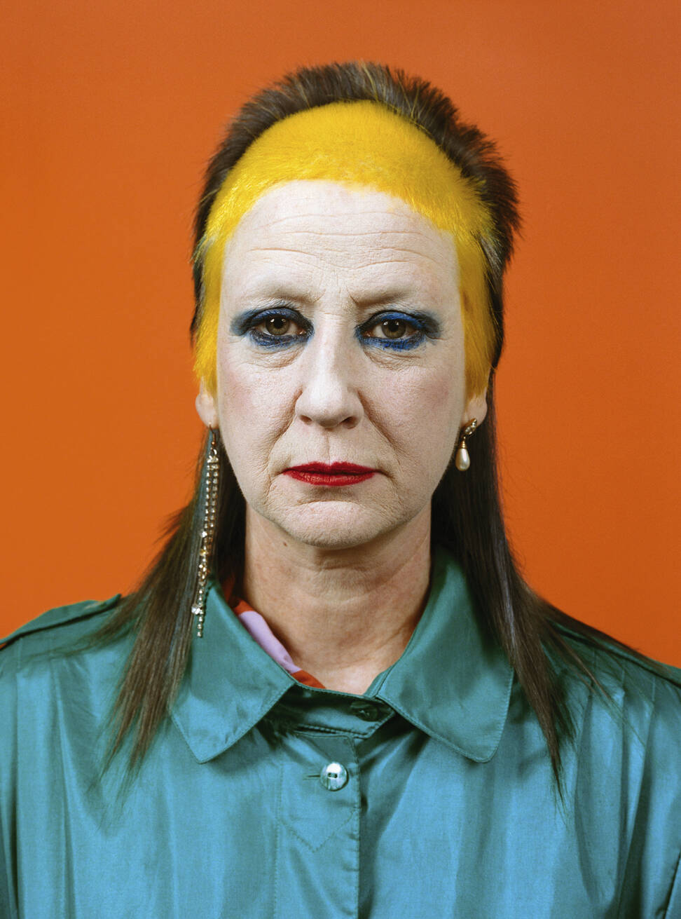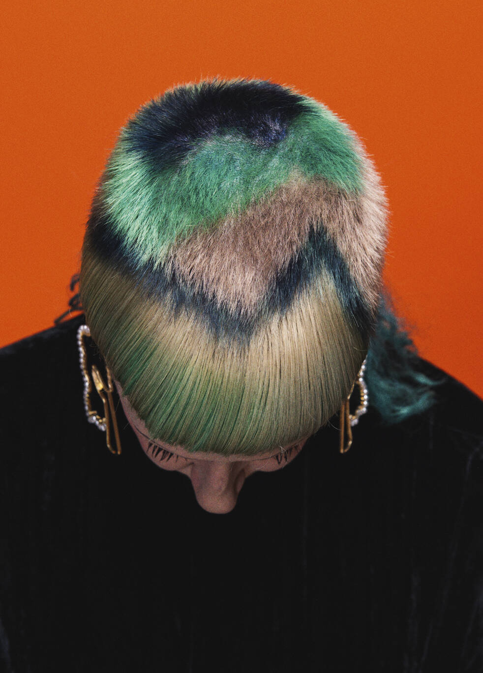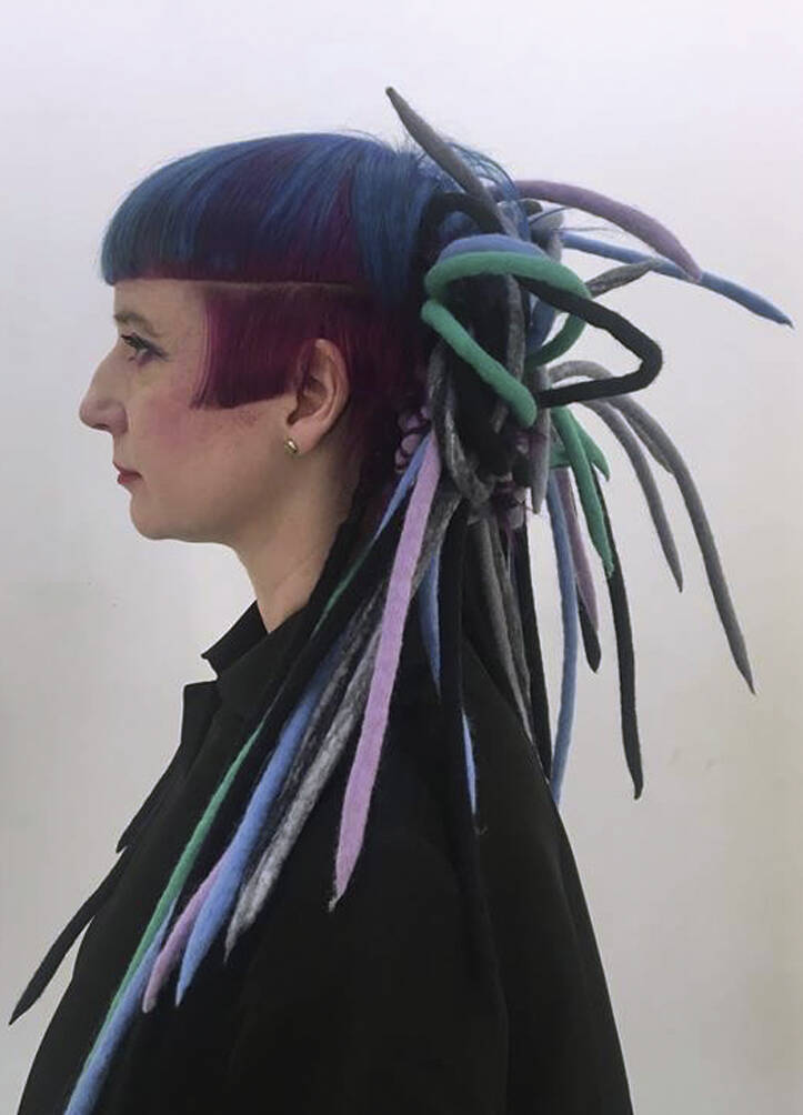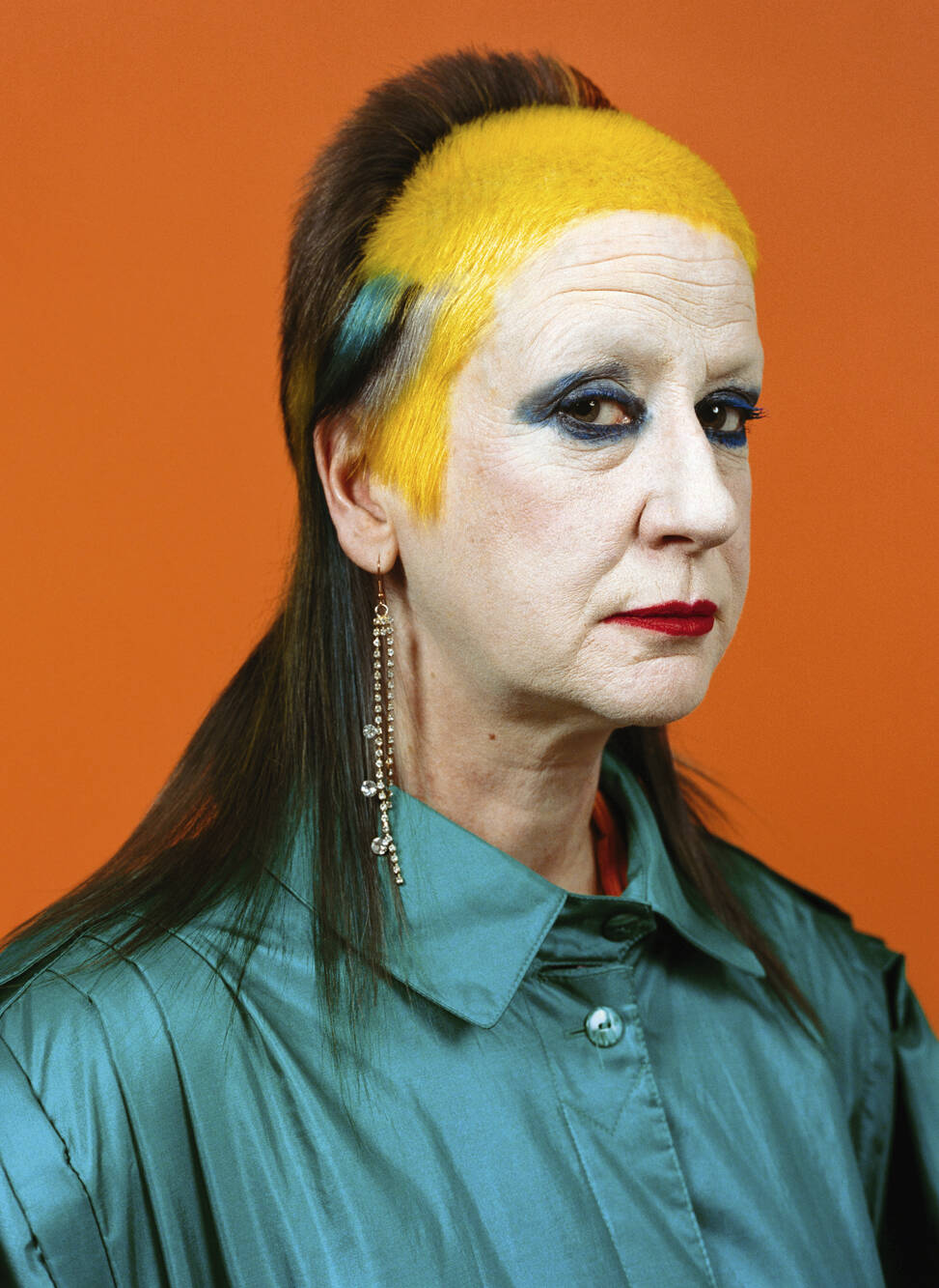 “We laugh about it, but I’m not doing myself any favours,” says Verhoeven, “I just care less now what it looks like.” She’s happy to follow a creative idea to its end point, however wild, “Because of the age I’m at [55], I’m used to being ignored even with the crazy hair,” she says, “What have you got to do? It’s just quite funny. I used to get quite a lot of people taking notes and taking photos when I was younger, but now they’re like, crazy old woman and they don’t really bother.” She knows that her hair throws down a visual gauntlet. “I love it. It’s a way of engaging or not engaging with people, and it’s really fascinating. People get angry, which is absolutely ridiculous that you can rile somebody to that extent.”